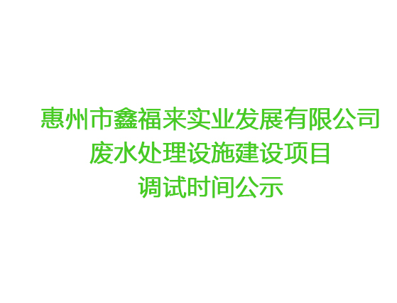 惠州市鑫福來實(shí)業(yè)發(fā)展有限公司 廢水處理設(shè)施建設(shè)項(xiàng)目調(diào)試時間公示