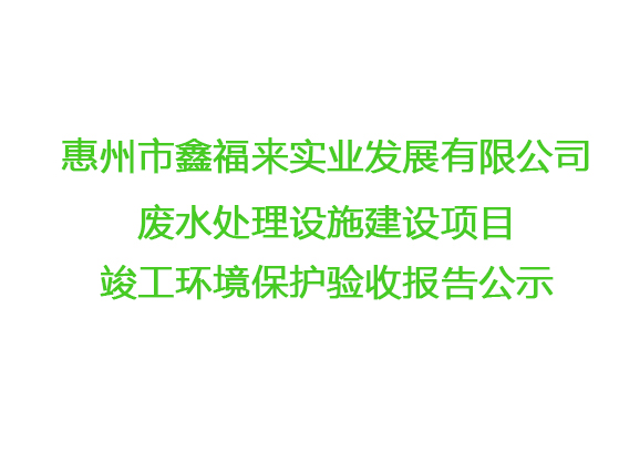 惠州市鑫福來實(shí)業(yè)發(fā)展有限公司廢水處理設(shè)施竣工環(huán)境保護(hù)驗(yàn)收報告公示