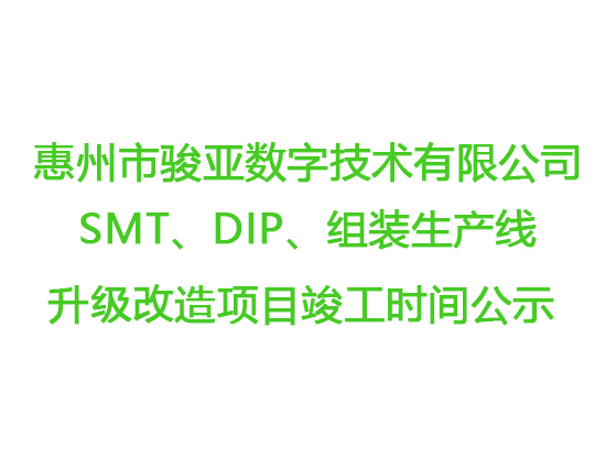 惠州市駿亞數(shù)字技術(shù)有限公司SMT、DIP、組裝生產(chǎn)線升級改造項(xiàng)目竣工時間公示